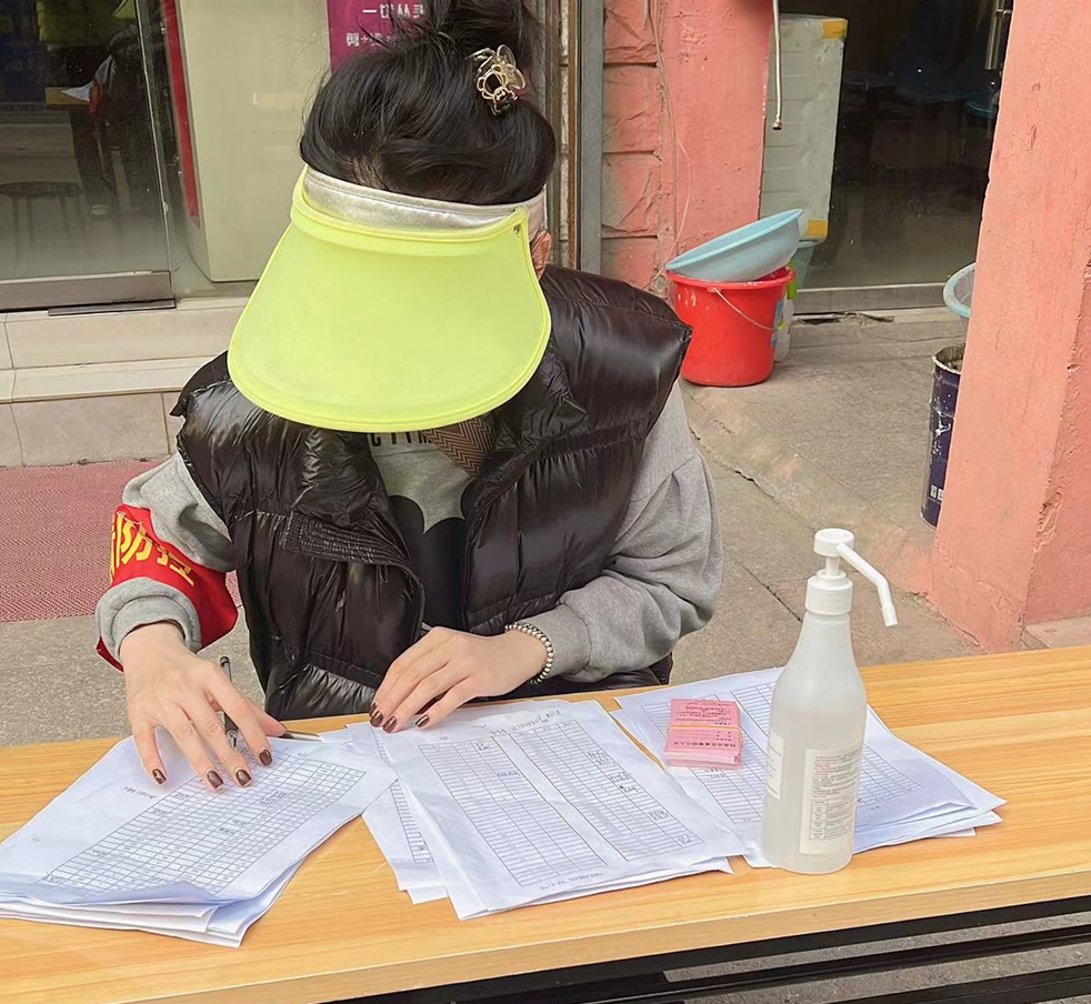 在抗疫現場(chǎng),我中心志愿者李丹丹負責登記社區人員信息,為已做完核酸檢測的住戶(hù)發(fā)放出門(mén)證明,維持現場(chǎng)秩序,引導人員有序排隊,開(kāi)展上門(mén)服務(wù),用通俗易懂的語(yǔ)言為社區住戶(hù)講解防疫常識,提高大家的面對嚴峻的疫情形勢。