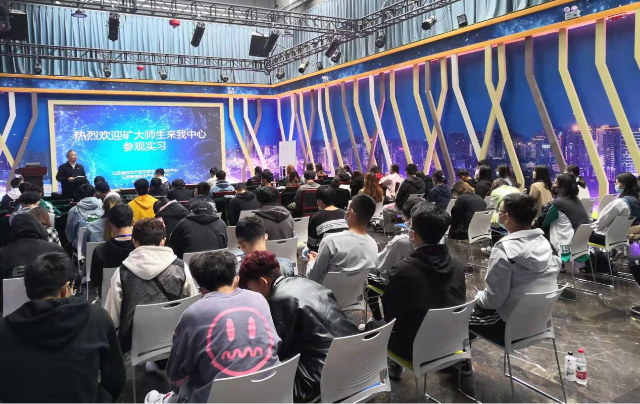2021年10月29日上午,中國礦業(yè)大學(xué)80余名學(xué)生在老師帶領(lǐng)下來(lái)我中心參觀(guān)實(shí)習。江蘇淮海技術(shù)產(chǎn)權交易中心總經(jīng)理邱承智及中心各部門(mén)負責人陪同參觀(guān)。